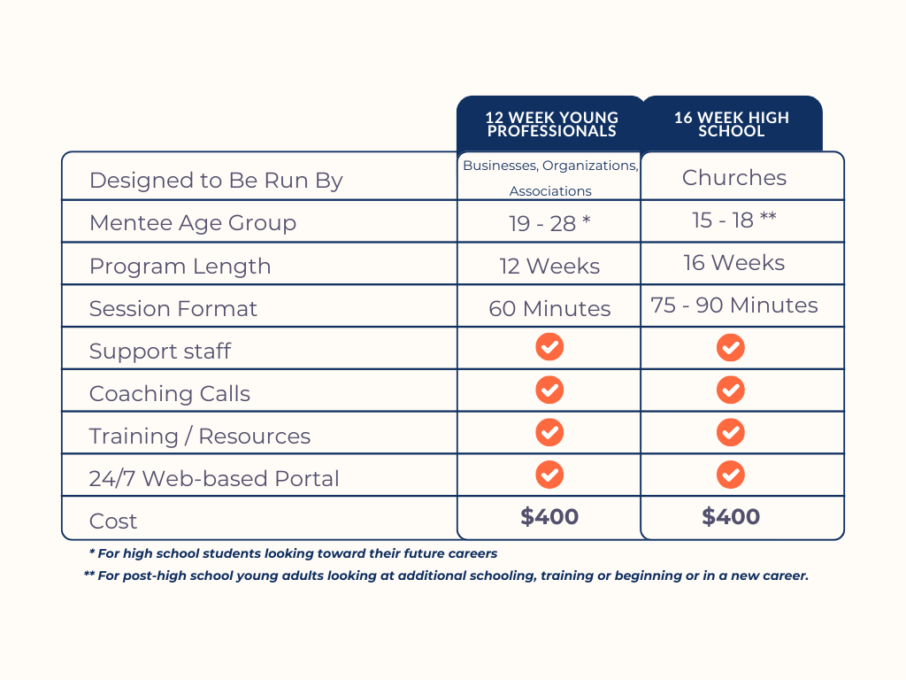 Marketplace offers 2 distinct programs with the same shared goal--engaging young adults along with experienced marketplace individuals together in a practical, faith-based mentoring opportunity. These programs benefit multiple generations both within the local church and the marketplace.